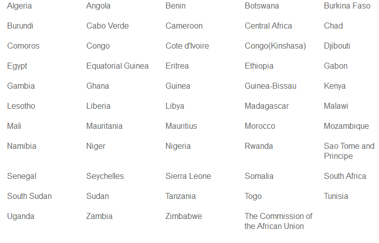China, 53 African countries that have established diplomatic relations with China and the Commission of the African Union. The 53 African states are: