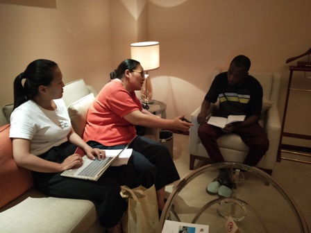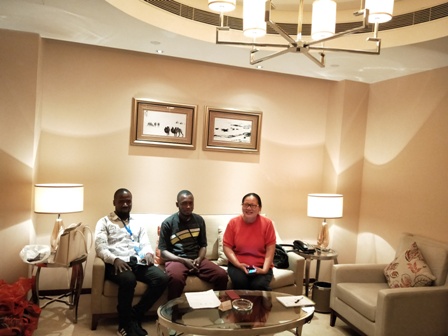 Minister of agriculture of Liberia and Professor Xu discuss